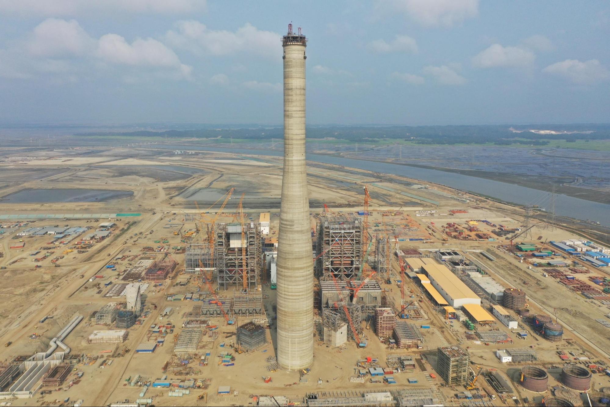 Chimney civil construction is in progress, Pennguard™ lining construction method, segmented inner cylinder after the ground lining is completed after the completion of hoisting