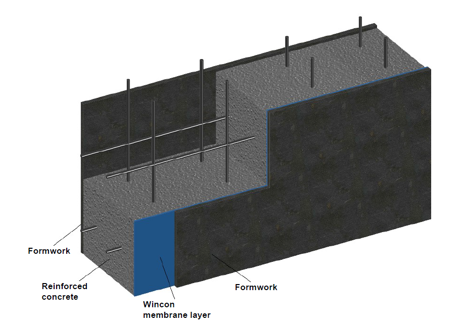 The system includes WINCON special flexible membrane layer, special WINCON formwork, welding and bonding supporting materials, reinforced concrete trough composition.